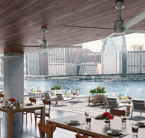 The Trak Wired modern commercial ceiling fan collection works where comfort is as important as style and durability. This commercial ceiling fan is available in four sizes, three versatile finishes, and an LED light option to fit best your space’s size, style, and lighting needs. Trak Wired is designed for modern commercial spaces that value stylistic appeal AND effective airflow. It is ideal for restaurants, fitness centers, patios, and sports facilities.
